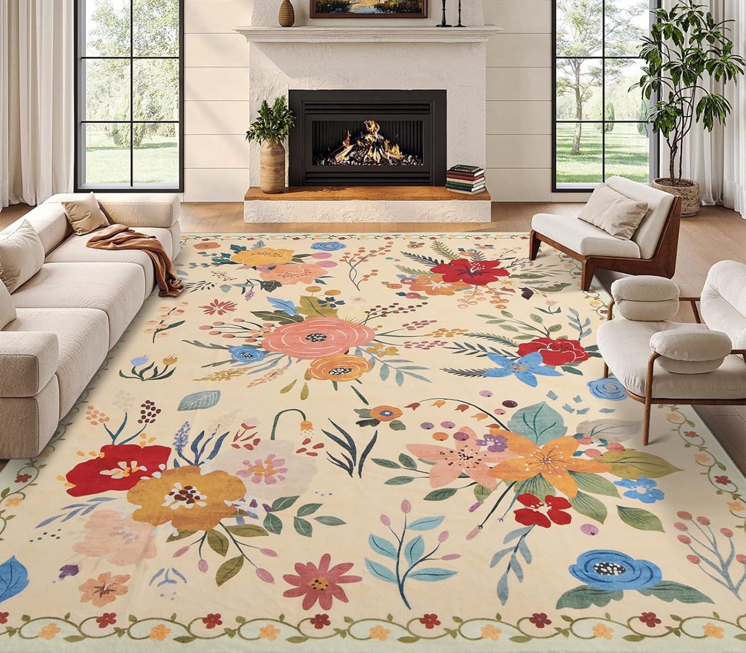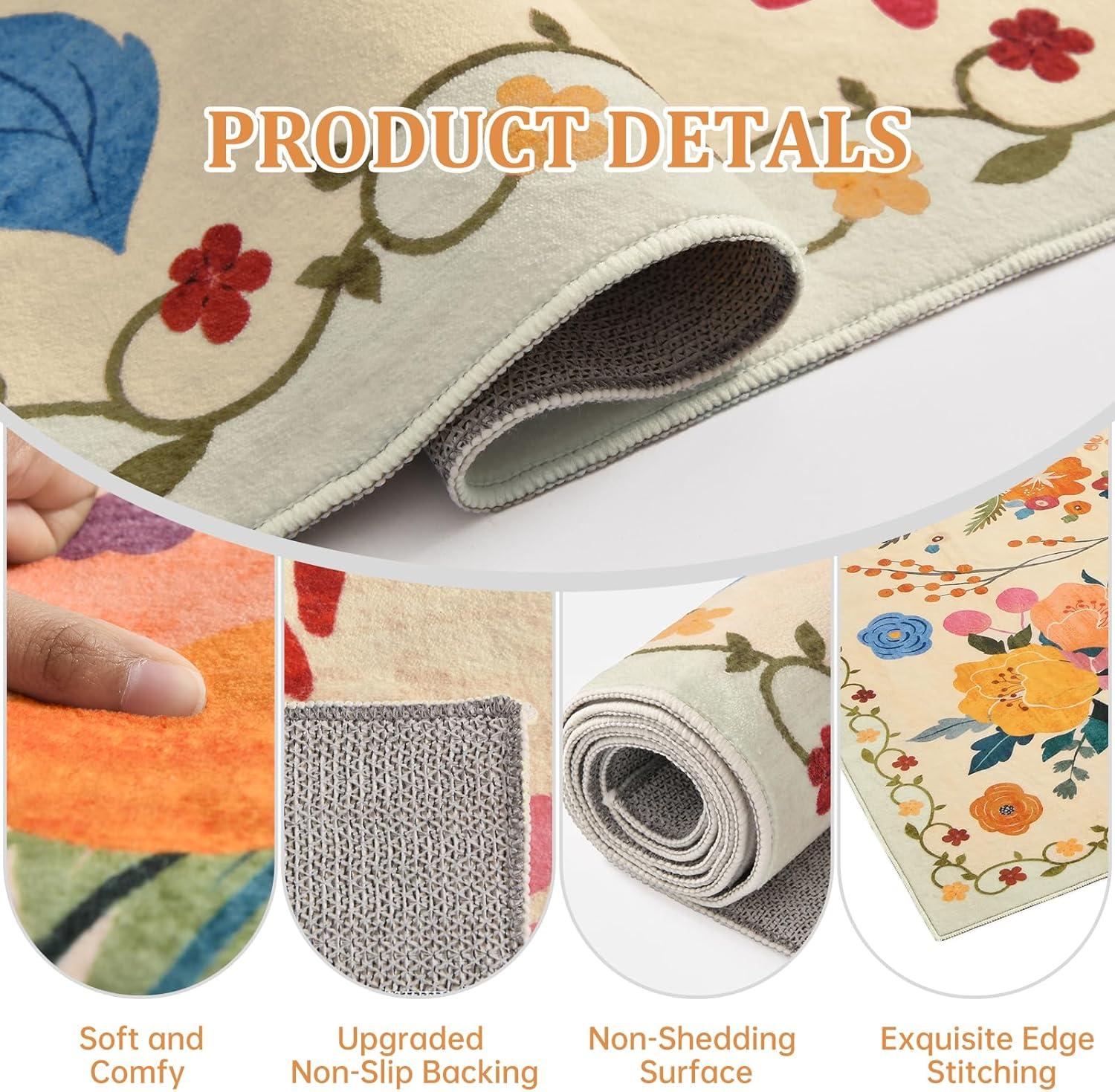 Ultra-Soft & Non-Slip Design:This floral rug offers a soft, skin-friendly surface with strong, precise stitching. The upgraded TPR rubber backing provides excellent grip to keep the rug securely in place—reducing the risk of slips, trips, and falls.