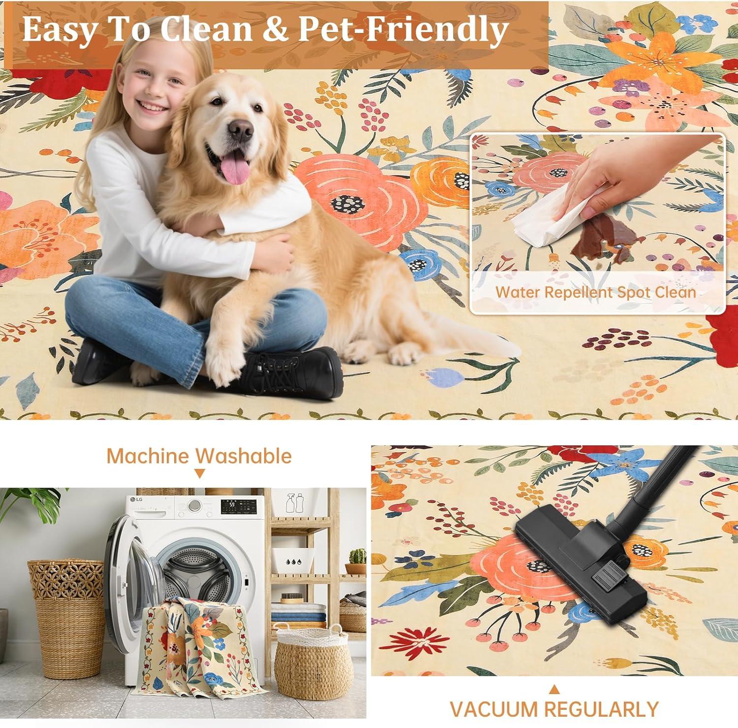 Kid & Pet Friendly:Made with low-pile, non-irritating materials that resist everyday stains, dirt, and pet hair. Whether it’s toddlers crawling or pets lounging, this rug is designed for safe, comfortable use in family-friendly homes.