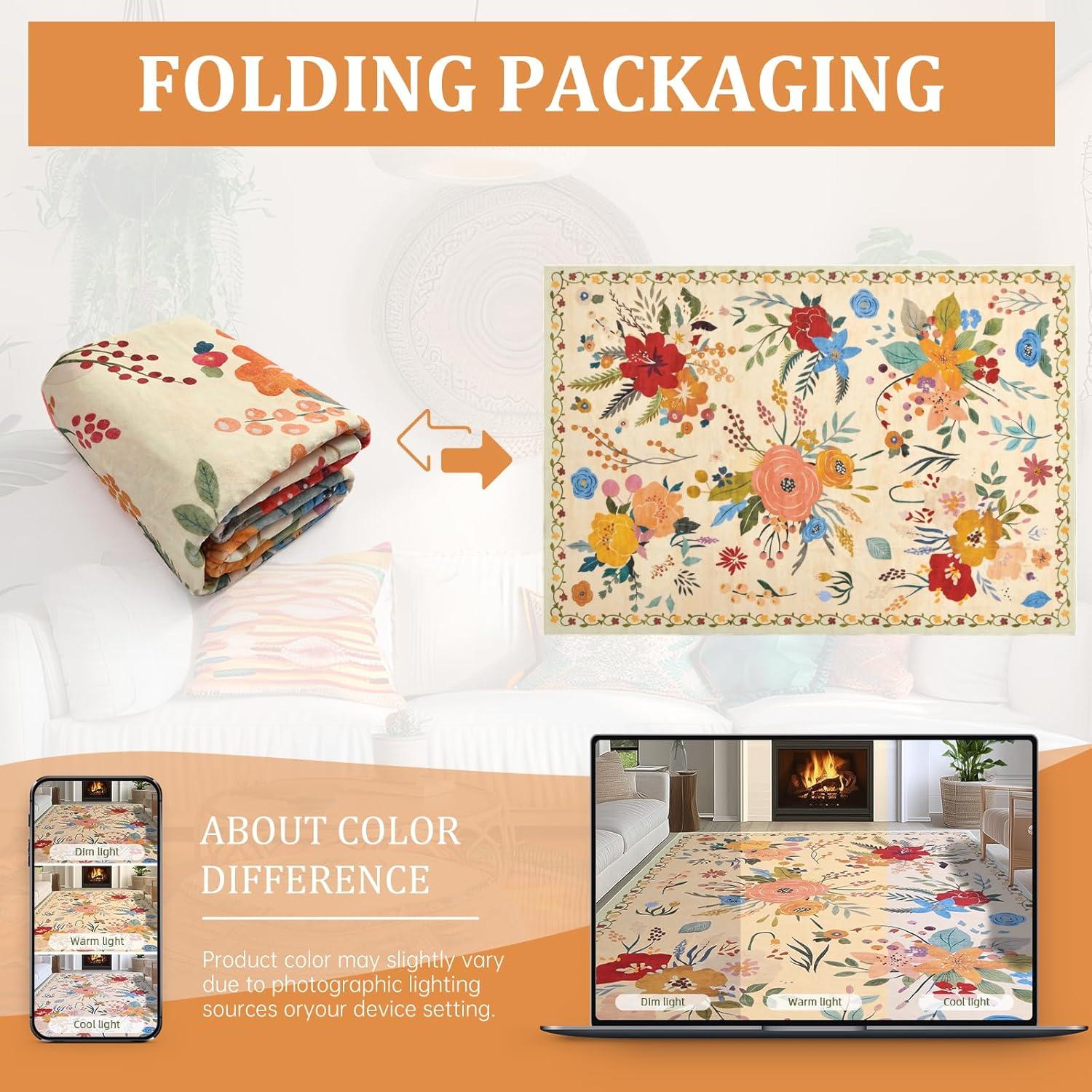 Product Care Tips:The floral rug is folded for shipping and may arrive with temporary creases. Don’t worry—creases will flatten out naturally within a few days of regular use. To speed up the process, try reverse rolling or placing a heavy object on the creased areas.