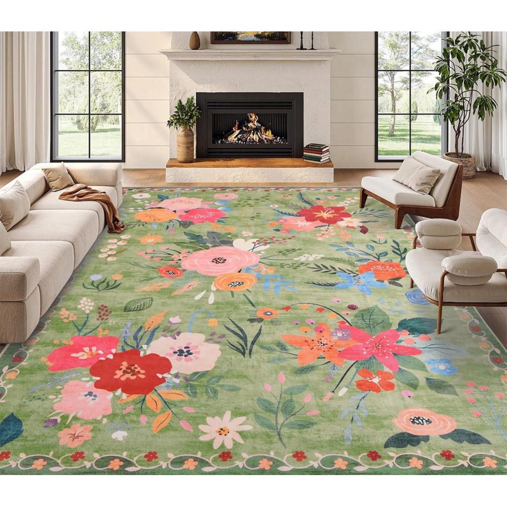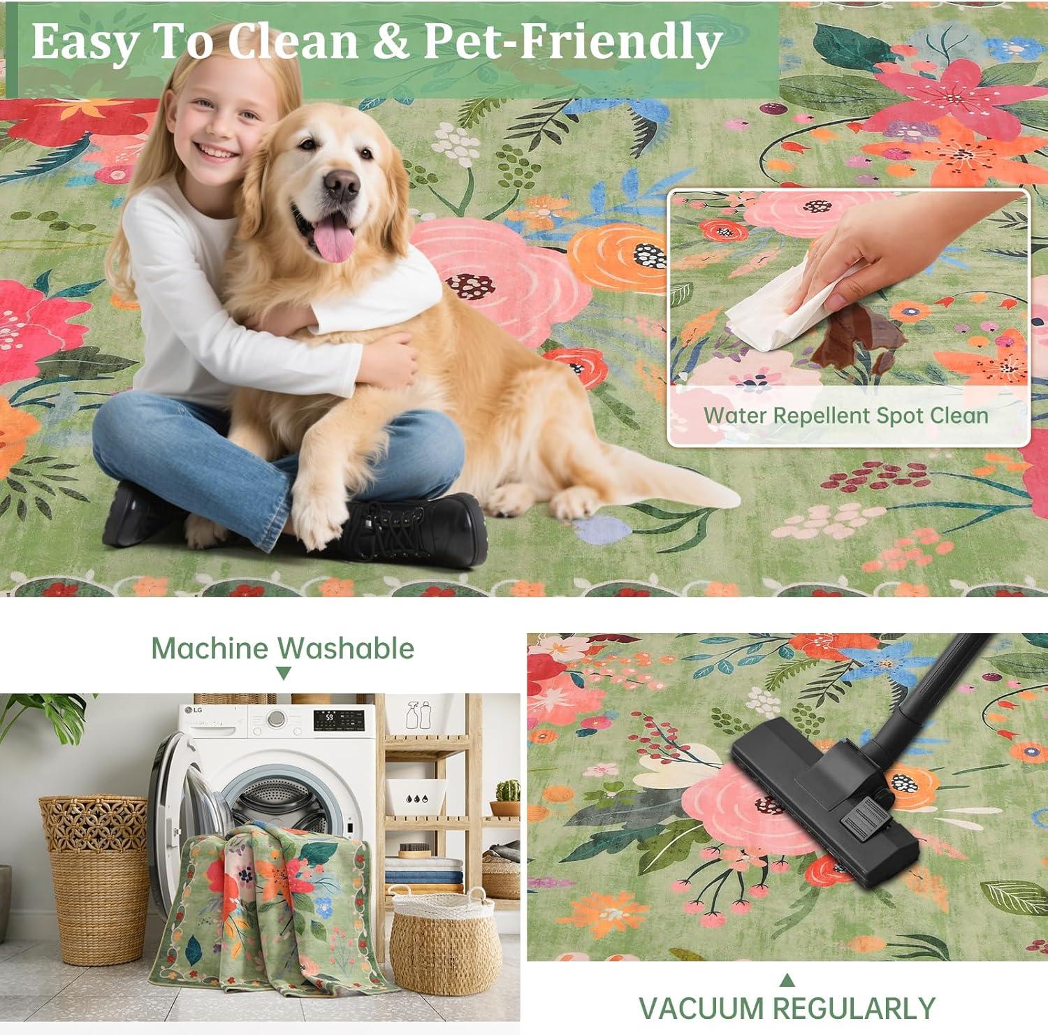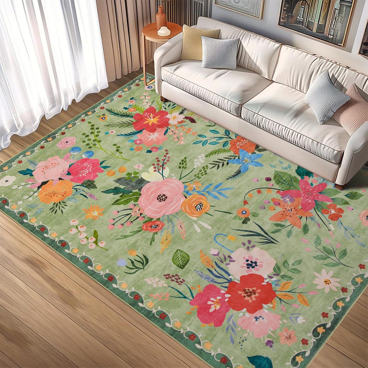 Dintszyayue 8x10 Area Rugs for Living Room Non Slip Washable Stain Resistant Floral Rug for Bedroom Dining Room(02-green)