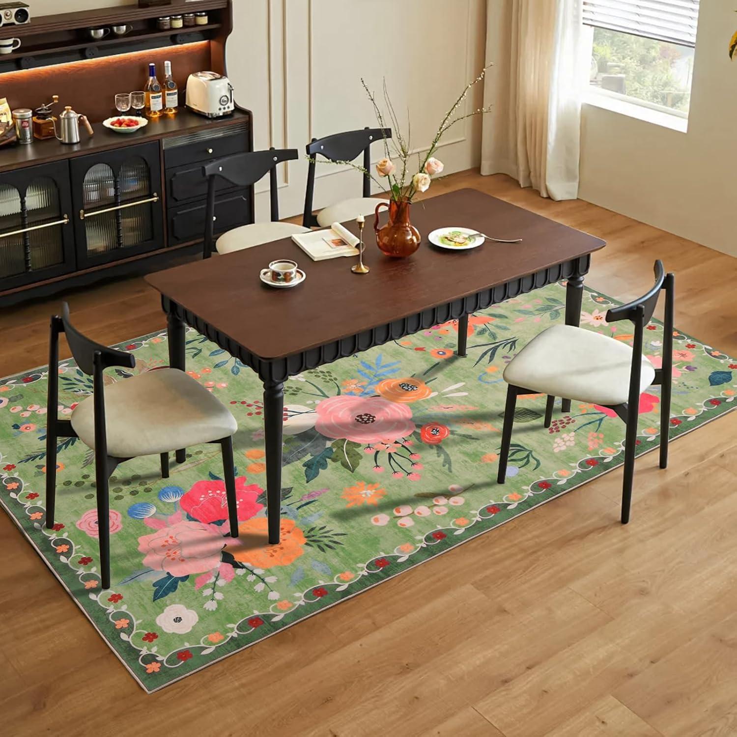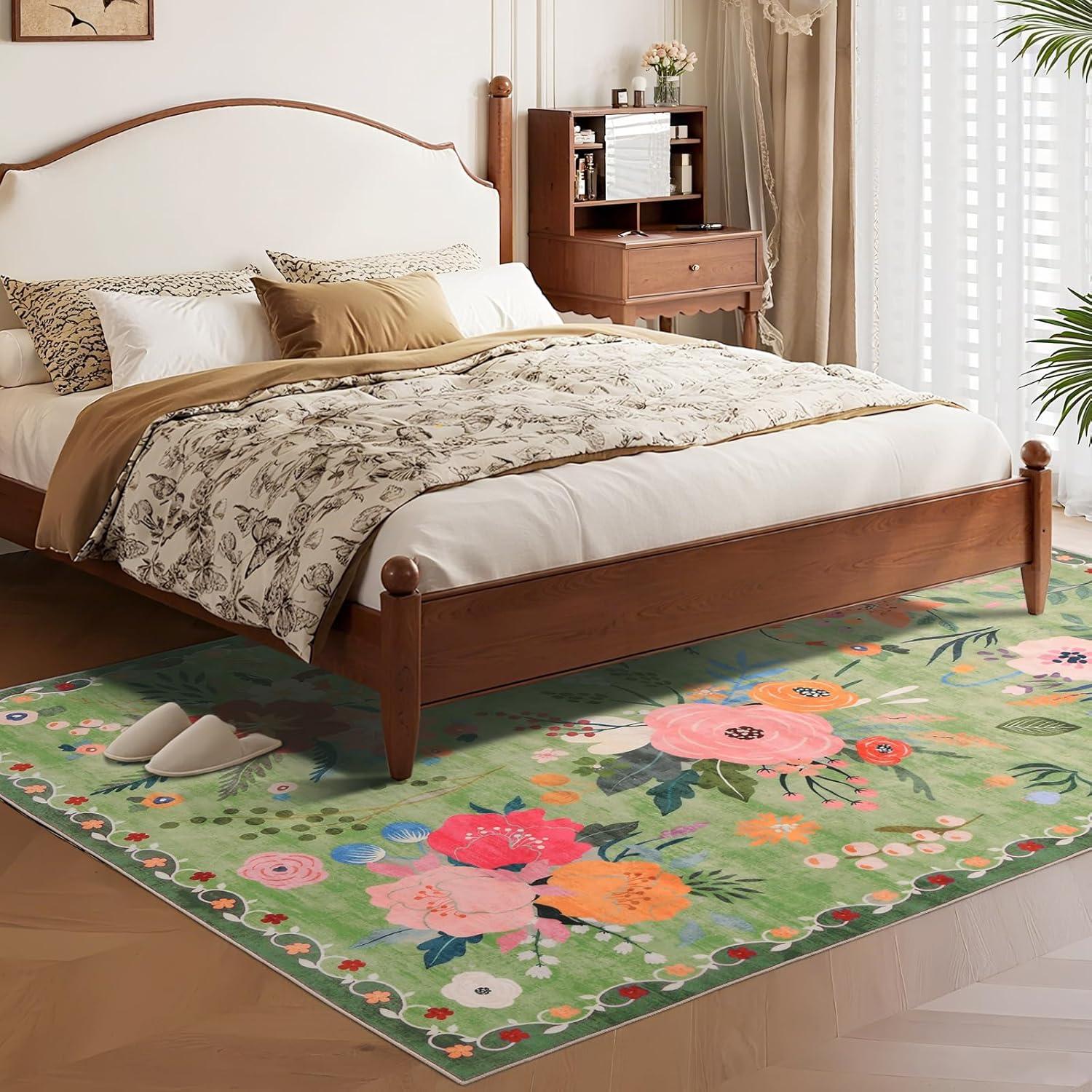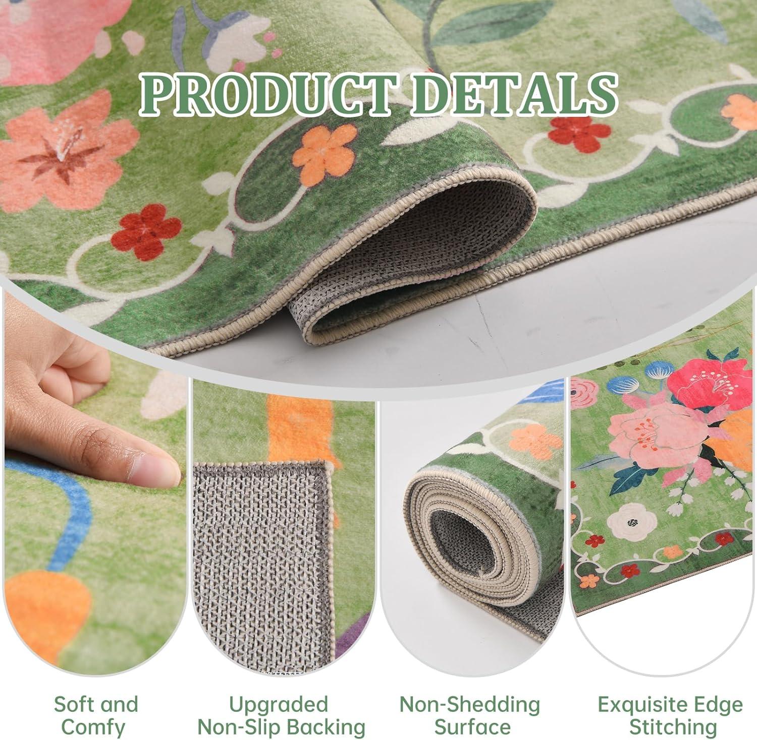 Dintszyayue 8x10 Area Rugs for Living Room Non Slip Washable Stain Resistant Floral Rug for Bedroom Dining Room(02-green)