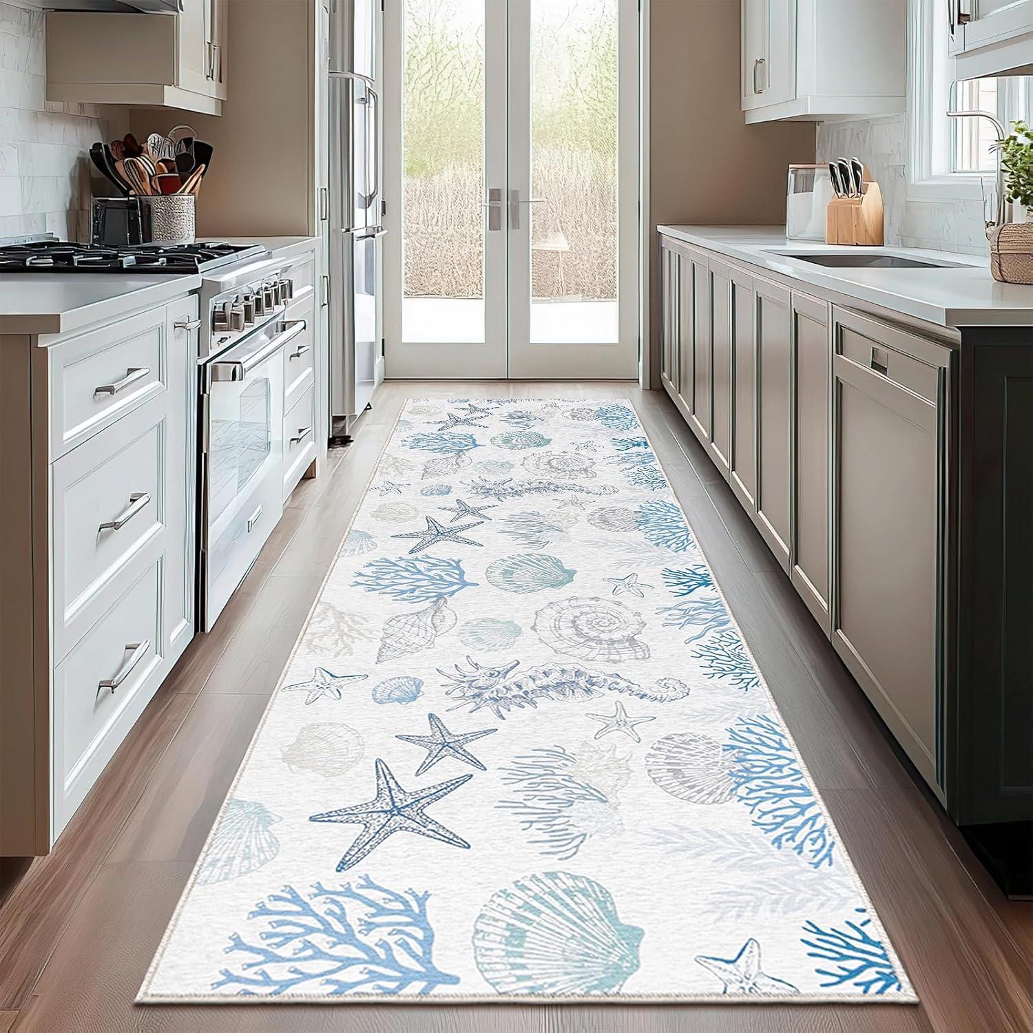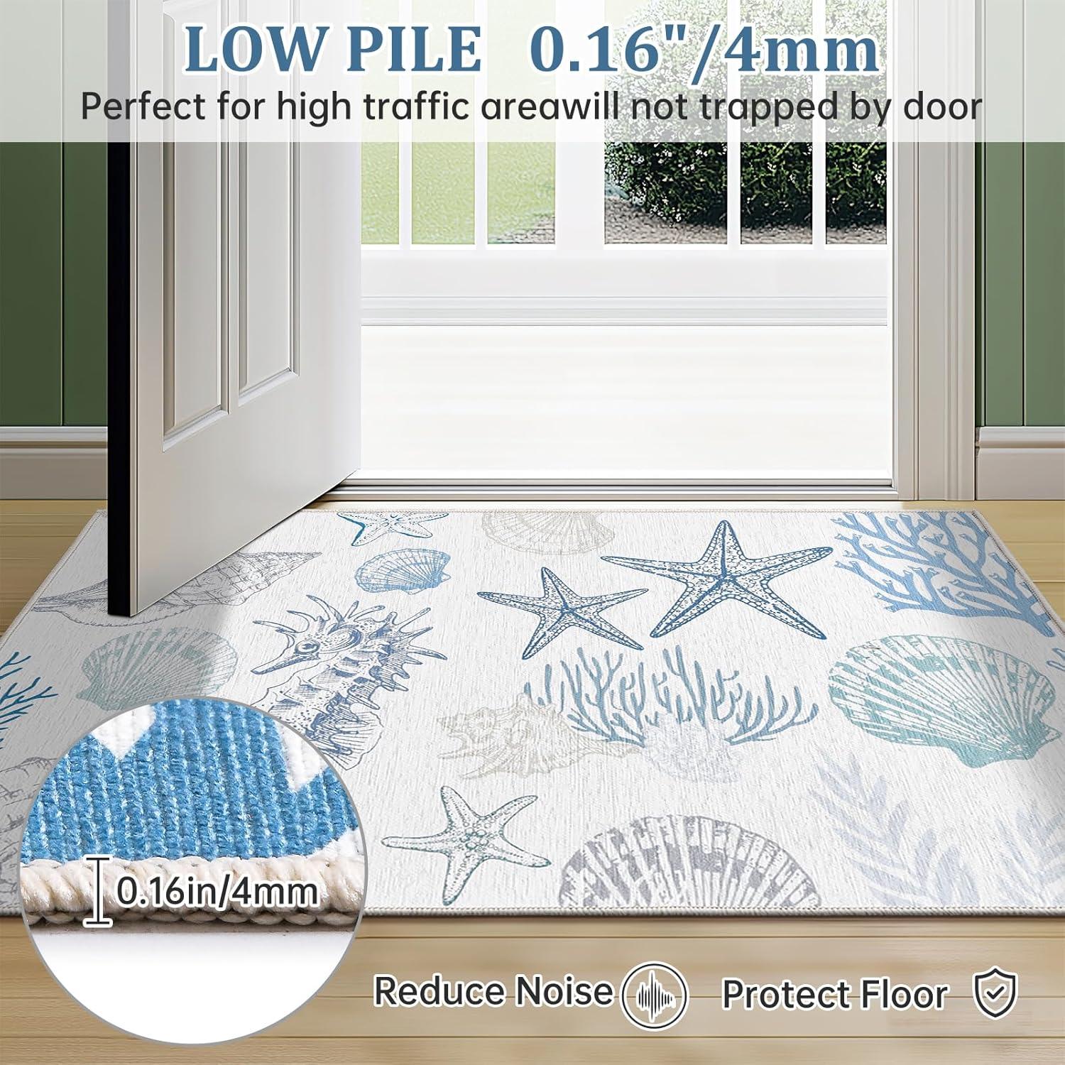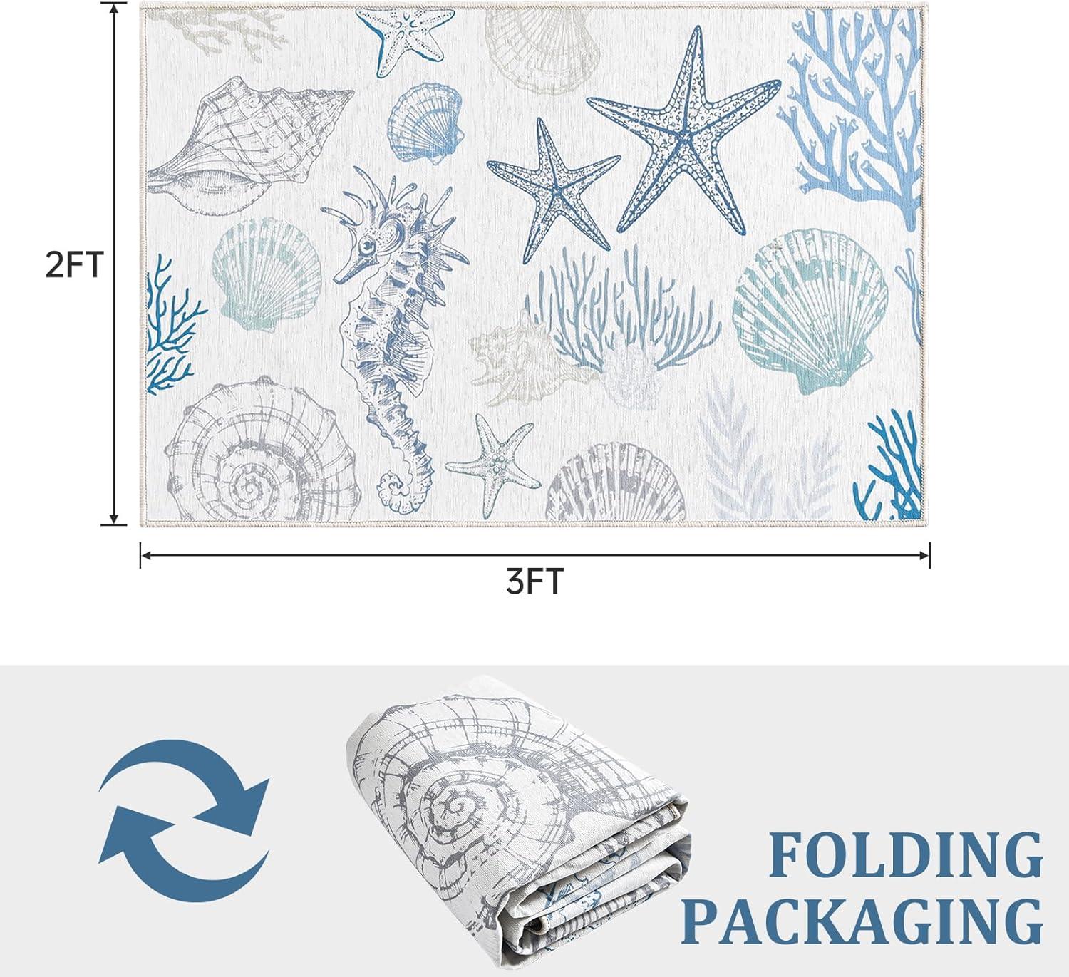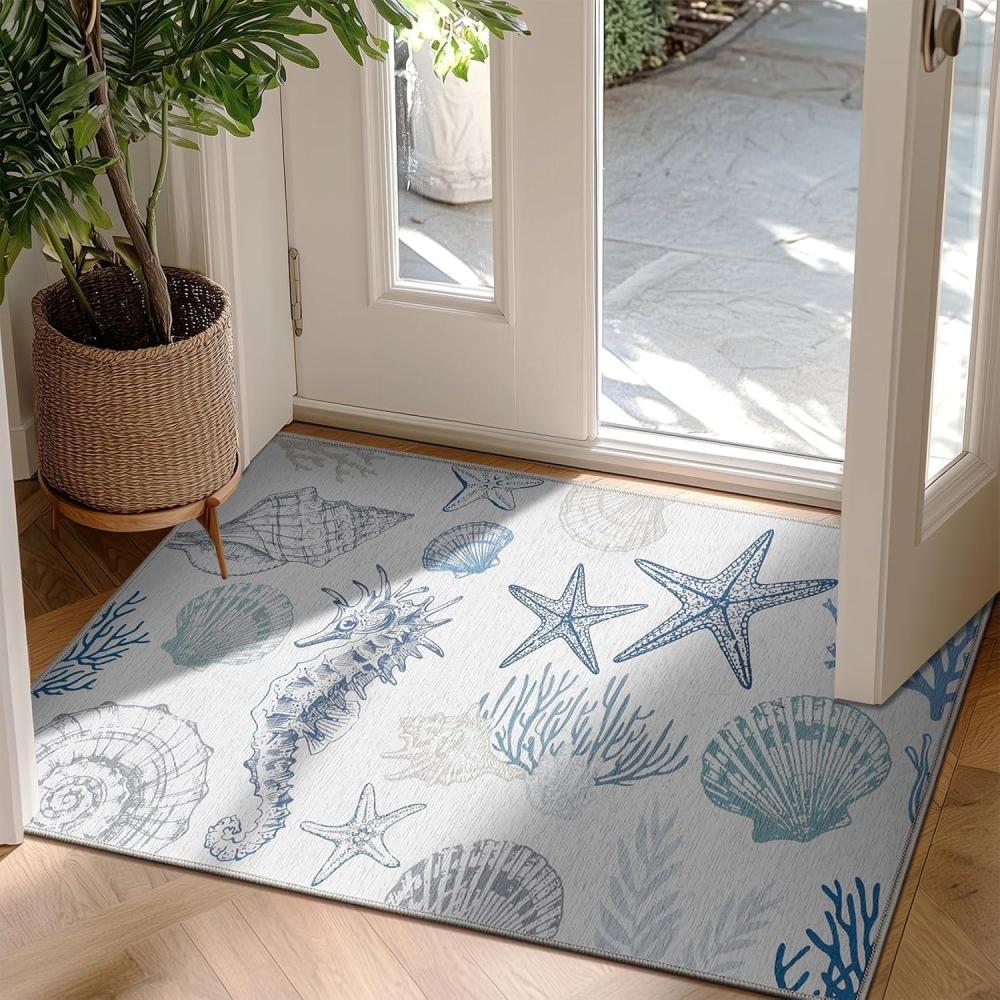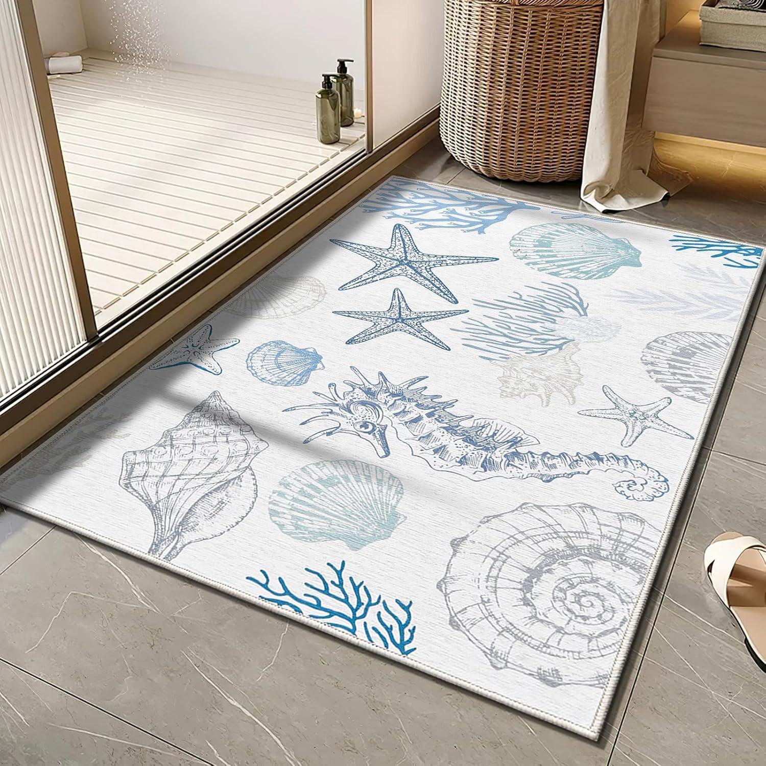 imageRunner Rug Non Slip 2x6 Coastal Area Rugs Washable Non Slip Stain Resistant Carpet for Hallway Laundry Room Bedroom Sea Horse01conch
