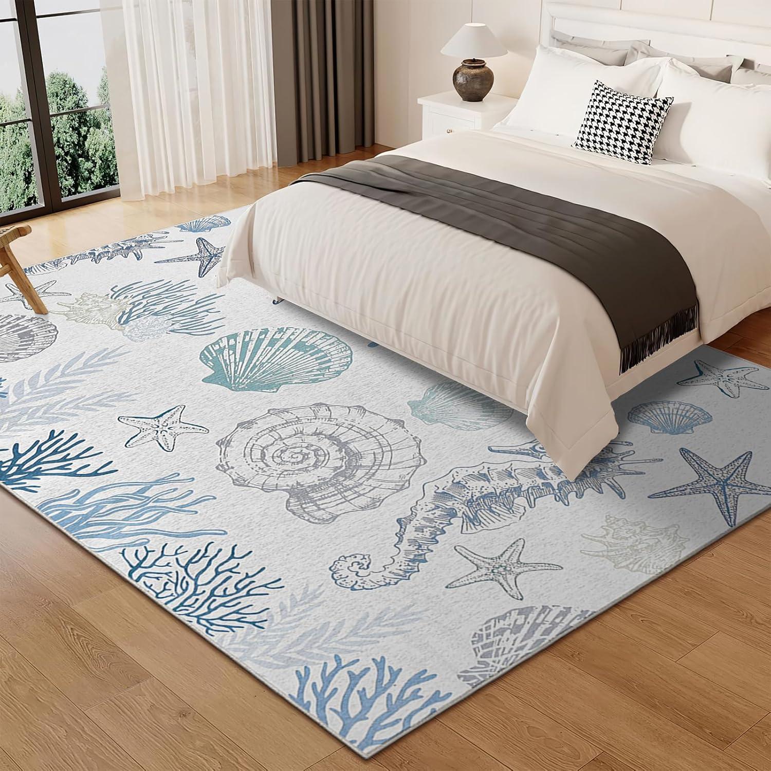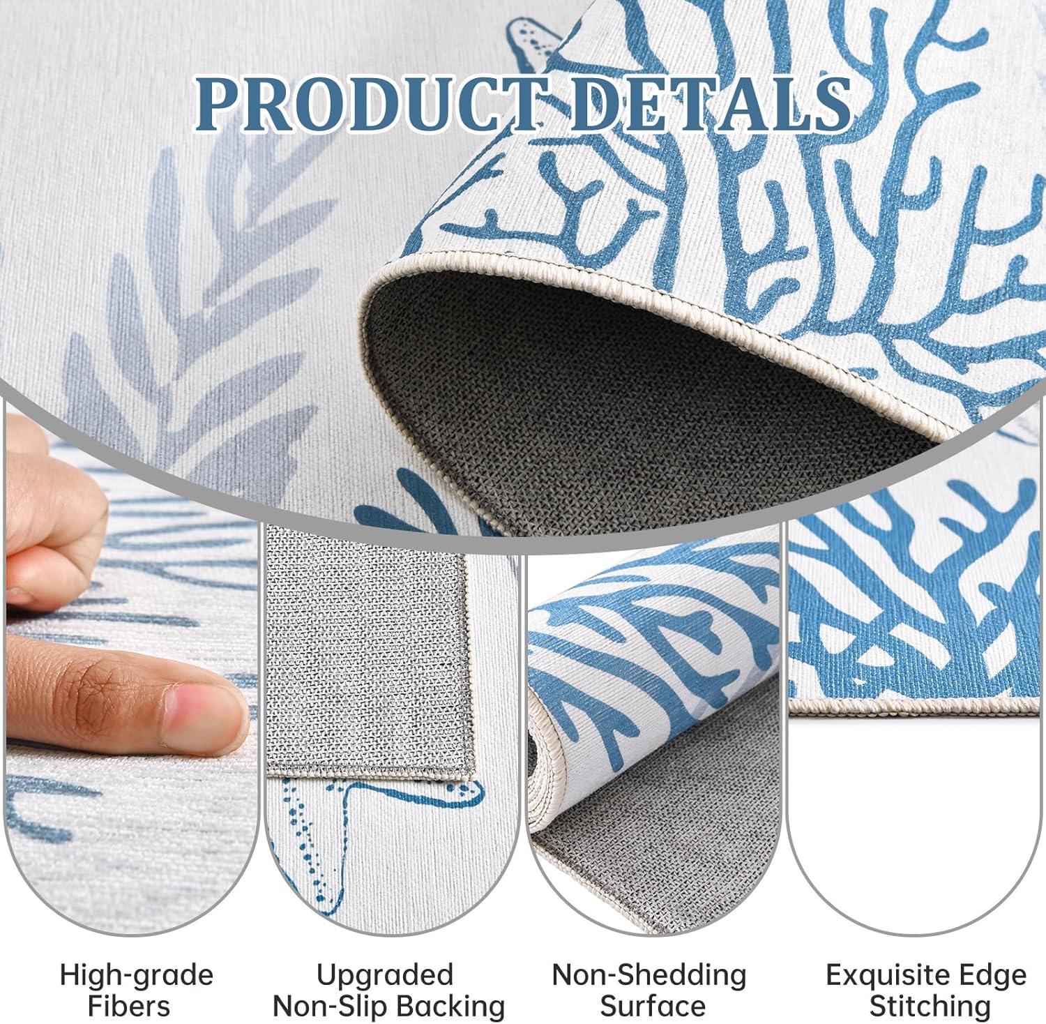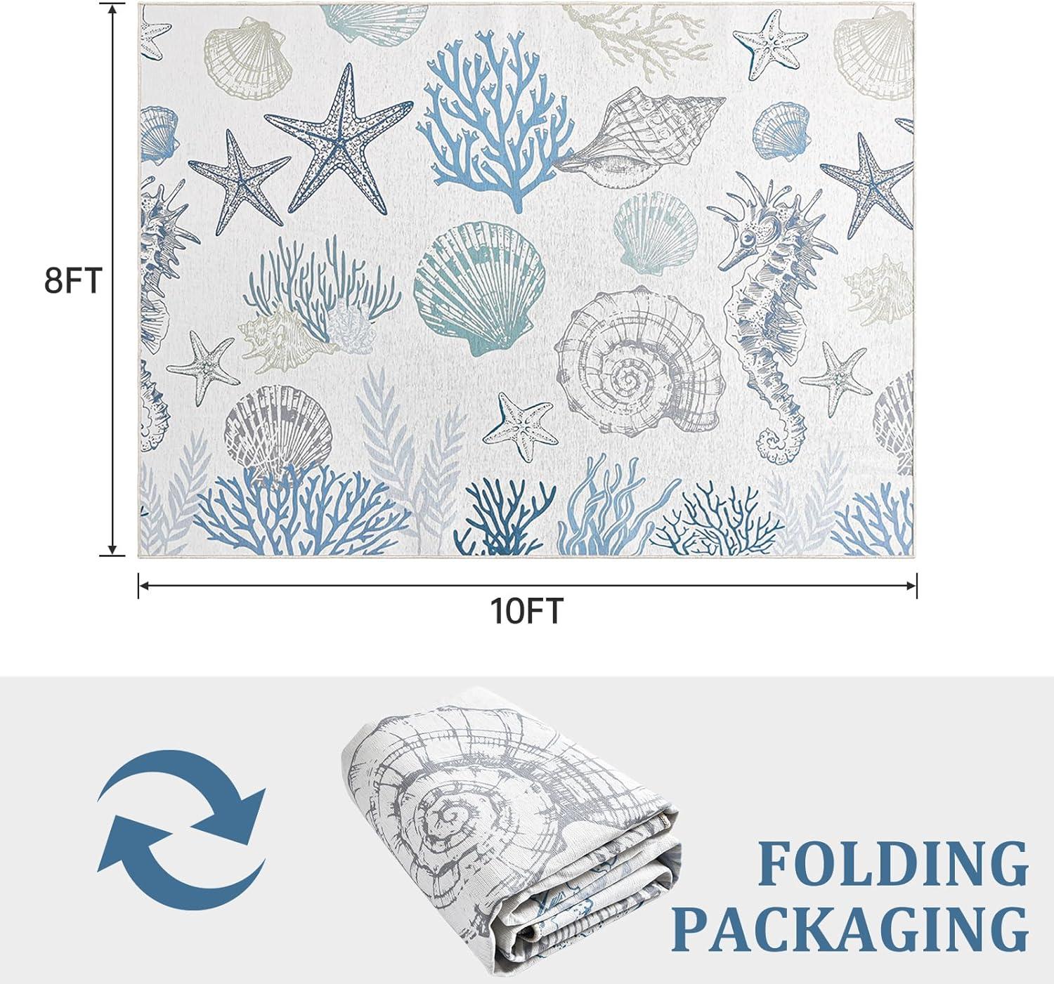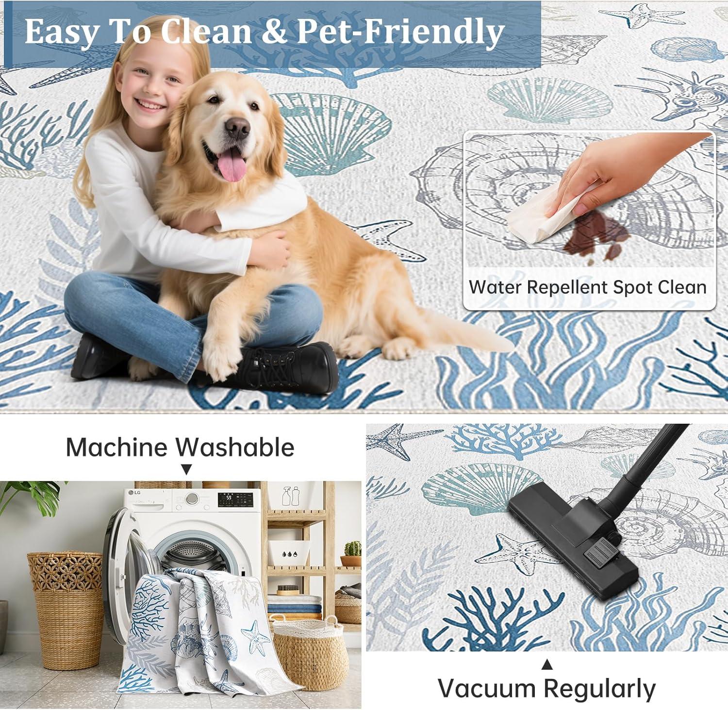 Easy to Clean & Washable Design:This washable area rug resists everyday spills and stains. Vacuum regularly or spot clean with mild detergent to keep colors vibrant. A low-maintenance coastal rug option ideal for busy households and vacation homes.