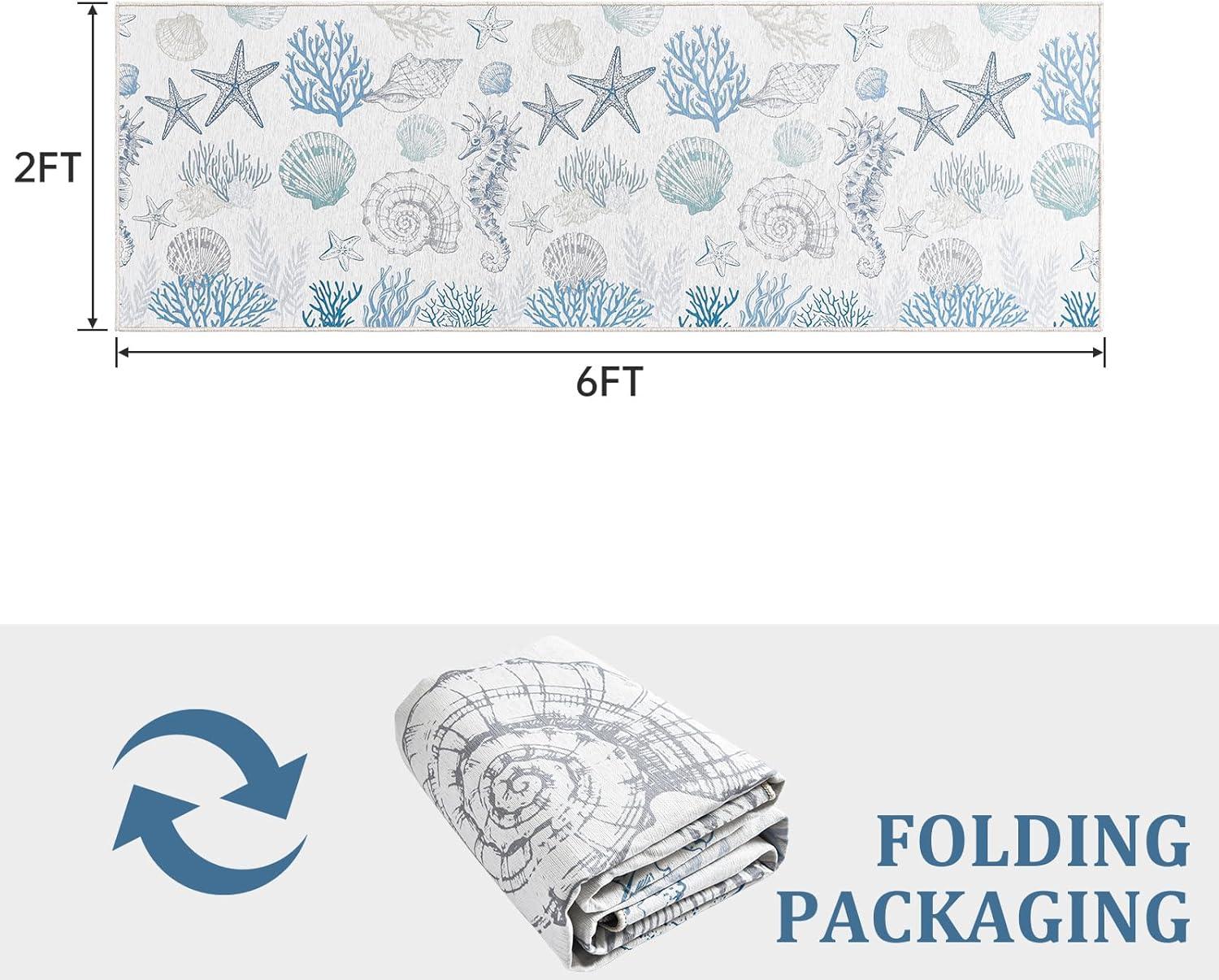 Runner Rug Non Slip 2×6 Coastal Area Rugs Washable Non Slip Stain Resistant Carpet for Hallway Laundry Room Bedroom Sea Horse(01-conch)